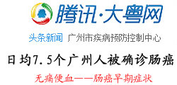广州市疾病预防控制中心:广州市肠癌发病率年增5%,全国居高。广州八成受访市民不知“便血”是肠癌信号。